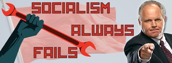 RUSH: The first thing that I would tell you about socialism is that it has never worked a single time in the history of the world. It has never accomplished any of its objectives anywhere in the world. It has not made people prosperous. It has not expanded liberty and freedom. It has not created more open-mindedness and tolerance. Socialism is essentially where the citizens of a country give over their freedom and their individuality to the state, and the state runs and controls — maybe not owns, but runs and controls — virtually all of a society’s needs, and some wants. But the needs is key, because it turns everybody into a dependent-on-government-for-survival person. It strips them of self-reliance and individuality, and that’s just the opener. But hang on, if you can, because there’s more.
