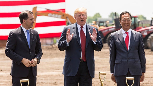 RUSH: This is kind of cool. President Trump is right now, as we speak, in Mount Pleasant, Wisconsin, at the ribbon cutting for the new Foxconn plant there. Foxconn is the Taiwanese company that assembles iPhones in both mainland China and India, a number of other places. And they’re opening a plant in Wisconsin, 13,000 jobs will be created. I think they’re gonna make LCD screens or any number of sized TV sets and iPad size. I don’t think they got much to do with iPhone production there, but Trump just talked about how brilliant a guy Scott Walker is.